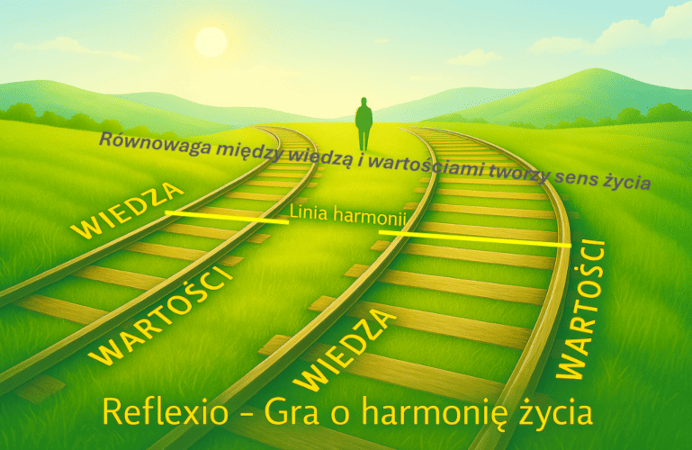 Reflexio nie jest grą w tradycyjnym sensie. Wymaga partnerstwa, samodzielności myślenia, refleksyjności. Czyli wymaga uważności – tej, której brakuje nam w codziennym pośpiechu. Uczy innego sposobu widzenia świata i siebie. Pokazuje, że każdy z nas porusza się po własnym torze życia zbudowanym z dwóch szyn: wiedzy i wartości. Kiedy ułożona jest harmonijnie, decyzje są spójne, a codzienność ma sens. Kiedy jedna z nich się unosi, pojawia się dysharmonia – napięcie, które wszyscy znamy jako niepokój, obawę, lęk – że „coś jest nie tak”. Reflexio pomaga zrozumieć istotę harmonii życia oraz pozyskać i utrwalić umiejętności odzyskiwania równowagi zanim napięcie zamieni się w poważny problem.