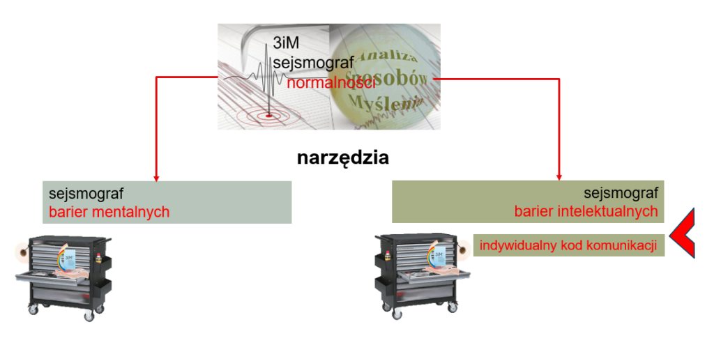 Pierwszym z narzędzi zamontowanych w sejsmografie barier intelektualnych jest analizator indywidualnego kodu komunikacyjnego każdego uczestnika zespołu.