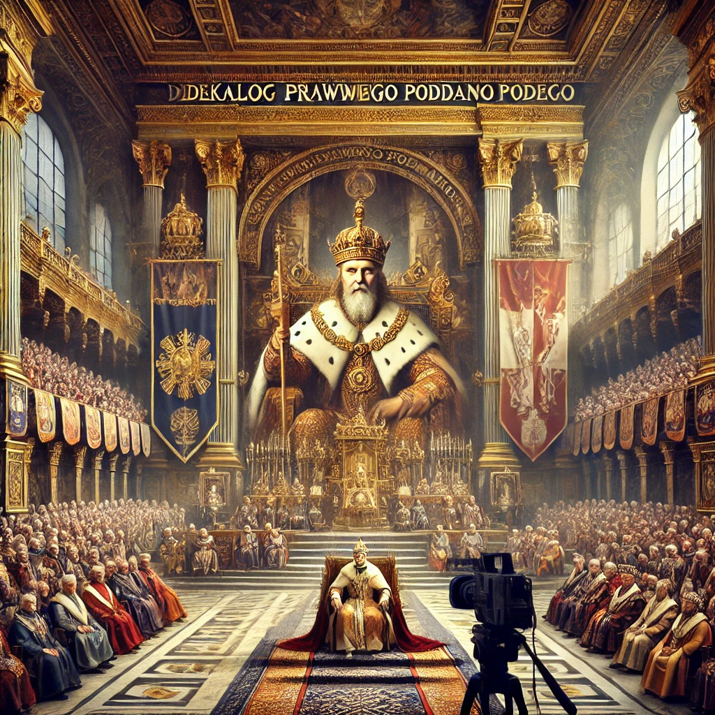 Król wraz z Baronem Balansu zasiadki na tekstem Dekalogu, Wprowadzenie go w życie publiczne zapowiedziane zostało w Orędziu Króla. Nadano